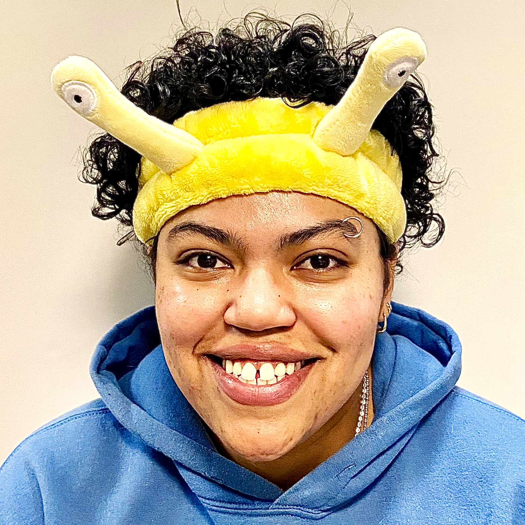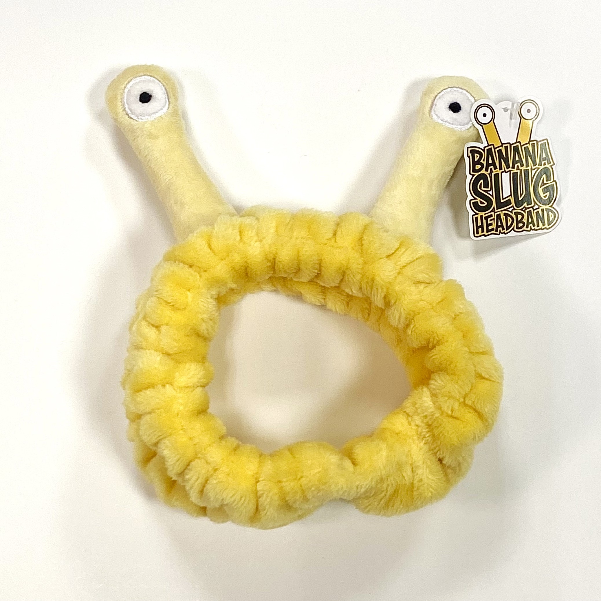 Fun 3D banana slug headband. Stretchy ruched fabric band fits most head widths. One size fits all.